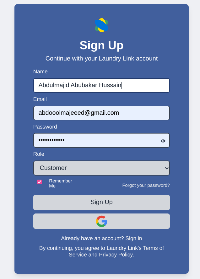 Laundry Link (Web Application) ā In Progress