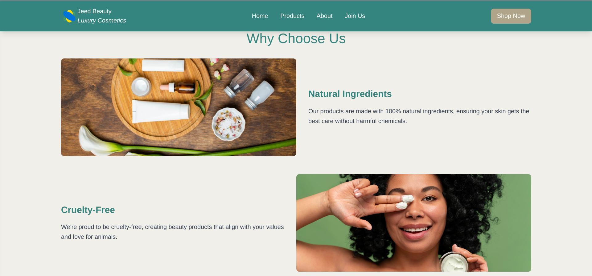 A beautiful landing page for a cosmetic brand that works perfectly on phones, tablets, and computers.